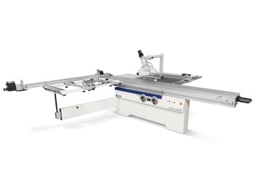 Grupul de ferăstrău poate fi înclinat. Panza de 250 mm iese din masă la 90 ° până la 80 mm înălțime. Ridicarea și înclinarea grupului se realizează cu ajutorul unor roți de mână confortabile. Caruciorul glisant, din aluminiu anodizat, are o cursă de 1200 mm și culisează aproape de panza, pentru o mai bună precizie de tăiere.